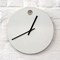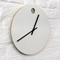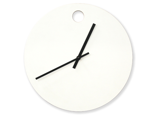 - Flat white, melamine faced birch plywood with contrasting black hour/minute hands.